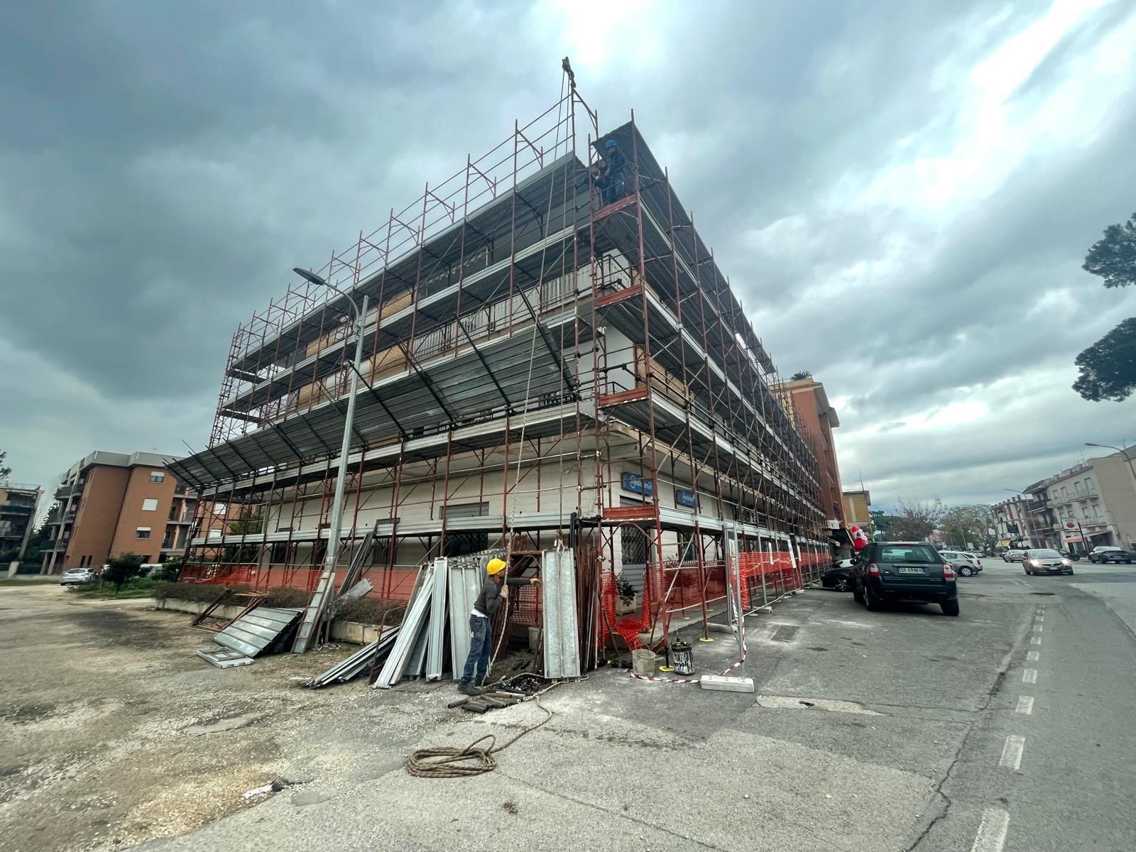 Ponteggi fissi e mobili e pulizia facciate con piattaforme aeree e montacarichi